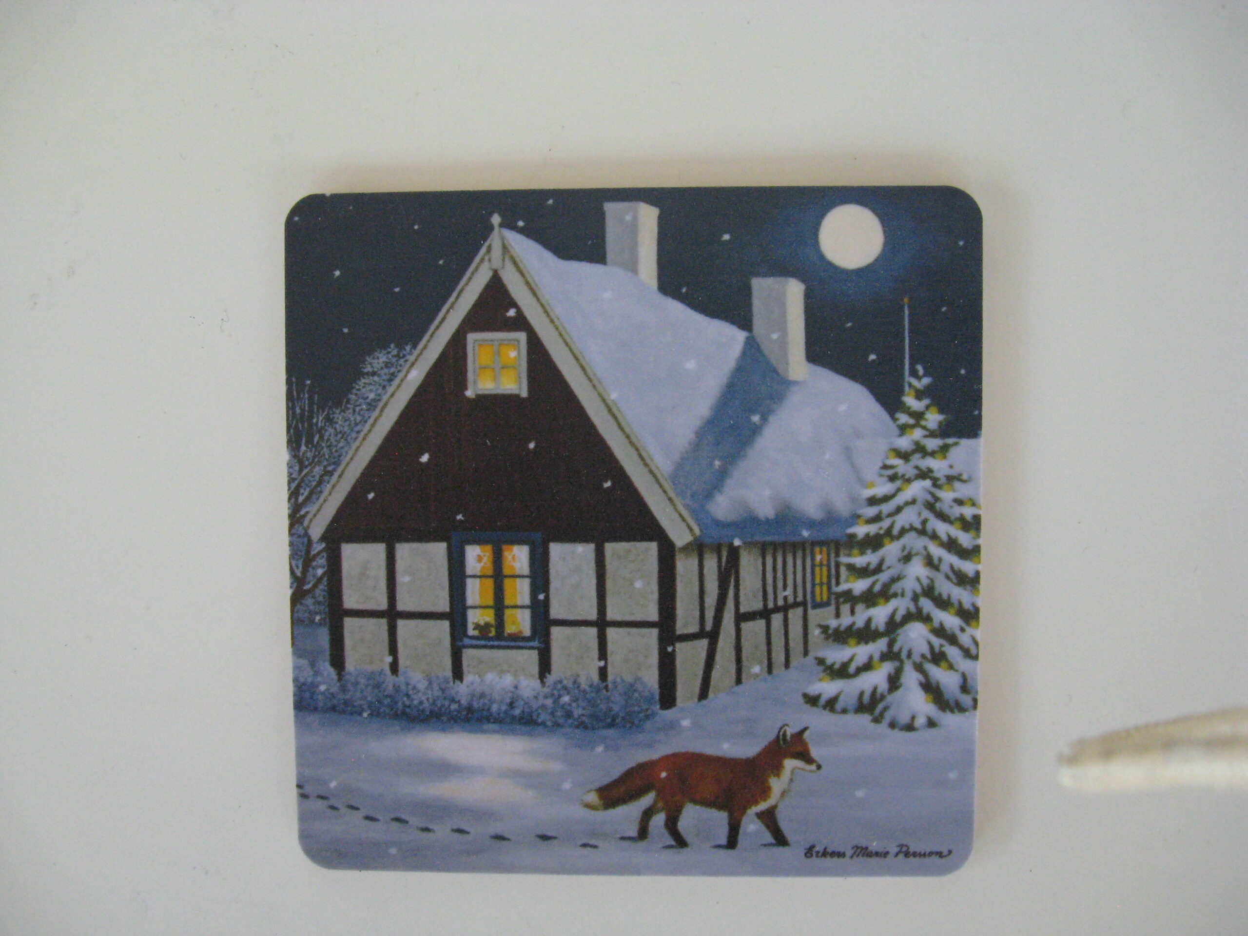 Christmas coaster wtih “Fox” motif by Erkers Marie Persson, 3.5″ x 3.5″, cork laminated