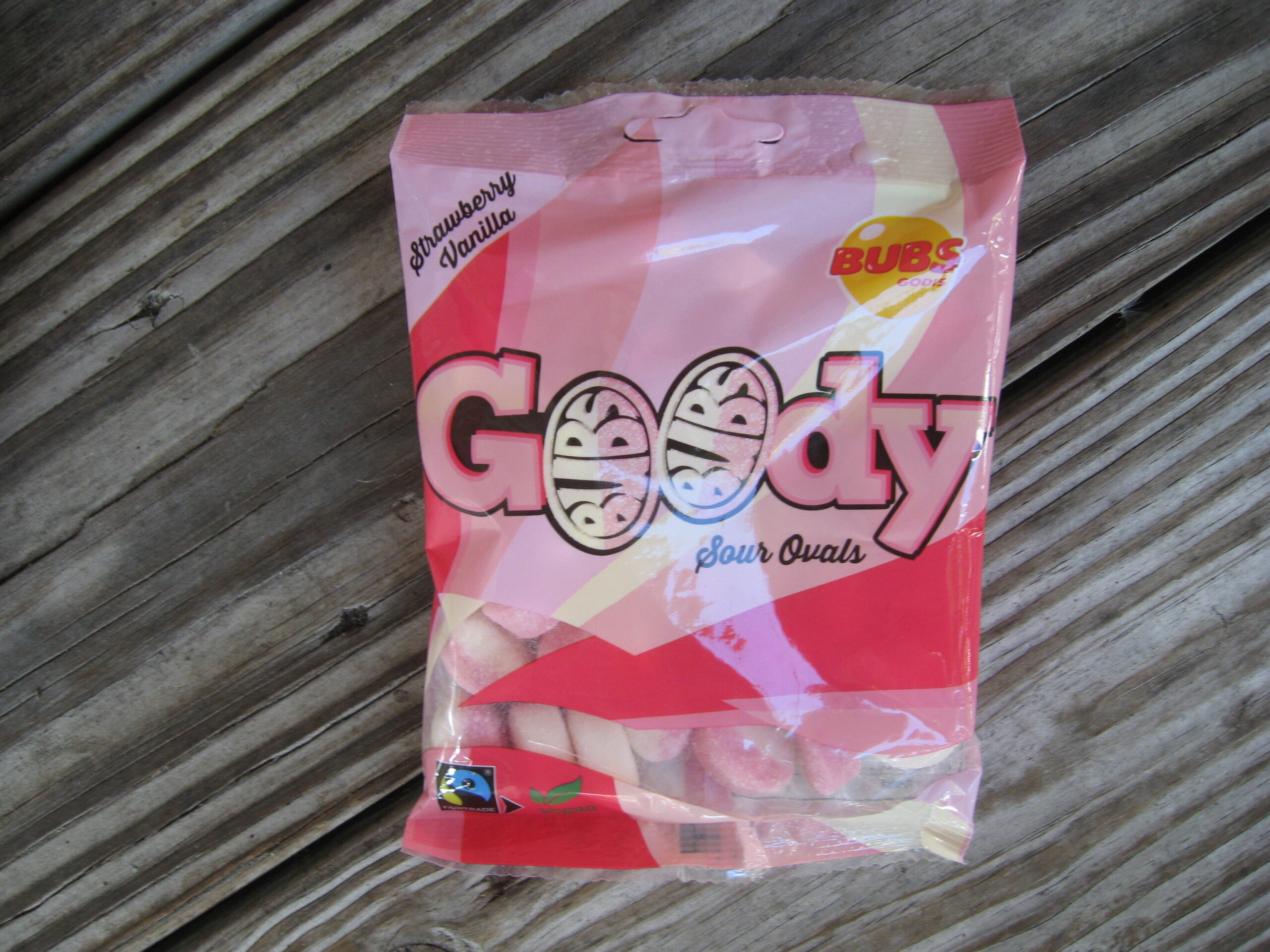 “Strawberry/vanilla” sour ovals, Bubs Godis, Sweden, 90 grams
